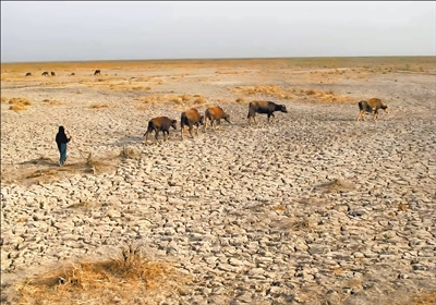 伊拉克南部美索不达米亚沼泽地区长期干旱少雨,一些湿地出现干涸。本报中东中心分社 伊纳斯·易卜拉欣摄